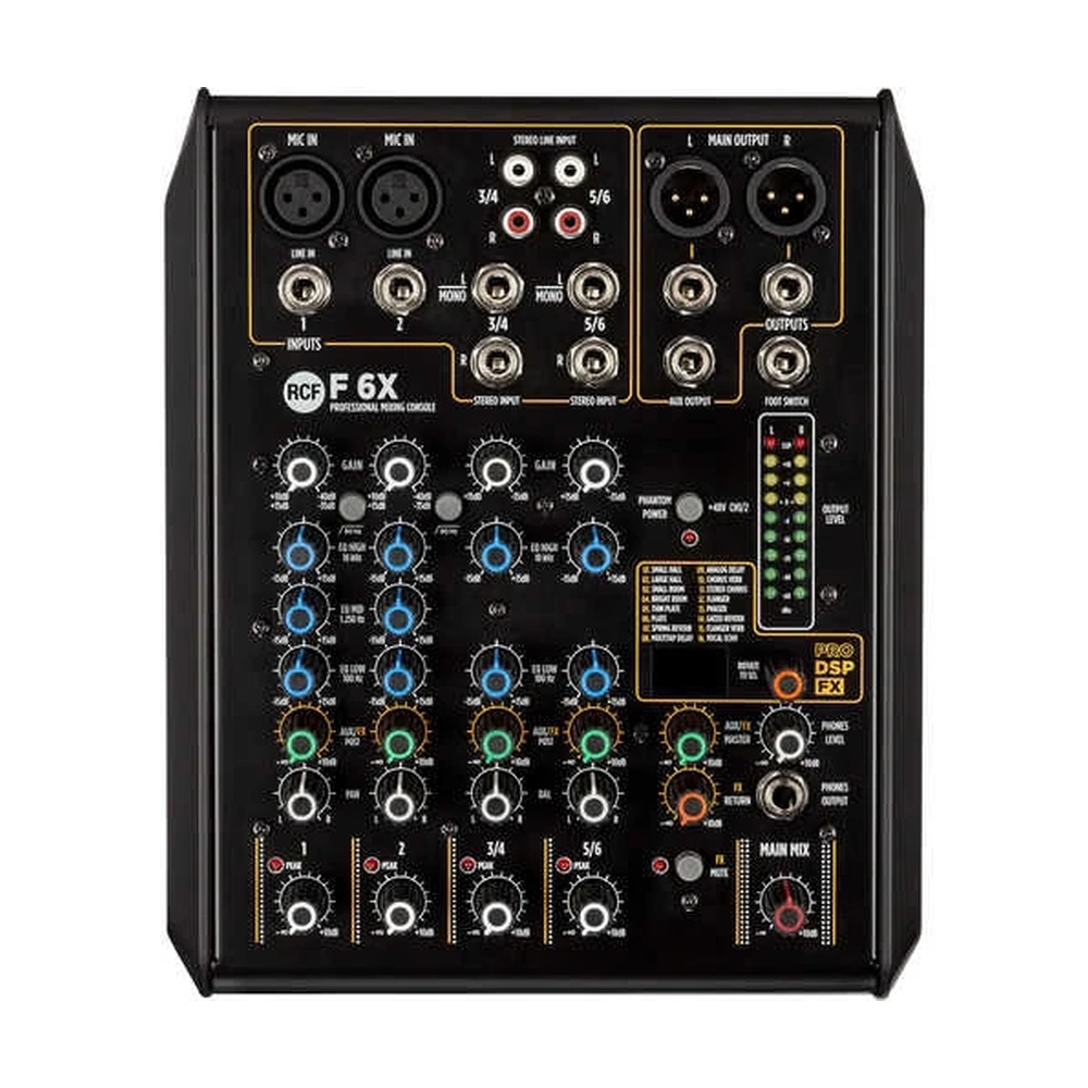 F 6X, 16 ön ayarlı PRO DSP dahili efekt seçeneği ile ses karışımınıza profesyonel dokunuşlar katmanıza imkan verir. Bu çoklu efektler, reverb, delay ve modülasyon gibi çeşitli ses işleme seçeneklerini içerir ve her performans veya kayıt ortamına uygun yaratıcı çözümler sunar. Kullanıcı dostu arayüzü sayesinde efektleri kolayca seçip uygulayabilir, sesinizi istediğiniz gibi şekillendirebilirsiniz. Ayrıca, bir adet post-fader Aux/FX çıkışı ile harici efekt cihazları veya monitör sistemleri için esnek bağlantı seçenekleri sunar. Bu özellikler, F 6X'i hem canlı sahne performanslarında hem de stüdyo çalışmalarında vazgeçilmez kılar.