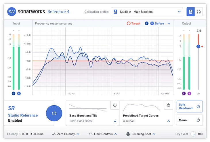 Reference 4 Studio Edition hem stüdyoda hem de hareket halinde iken tutarlı referans sound'u elde etmeniz için gerekli her şeye sahiptir. Stüdyonuzu 10 dakika içinde referans mikrofonu ile ölçtükten sonra Reference 4 sizin için bir kalibrasyon profili oluşturur. Kulaklık için ise Sonarworks tarafından hazırlanmış profillerden birini seçebilirsiniz. Kalibrasyon DAW programınızın içinden en düşük gecikme için plug-in aracılığı ile vaya Systemwide ile sistemin ana çıkışı üzerinden aktif hale getirilebilir.