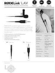 RODELink Lav bir çok farklı uygulamada kullanılabilecek profesyonel bir giyilebilir mikrofondur. Kilitli TRS bağlantısı RODELink serisi kablosuz mikrofonlar ile 3.5 mm. lik kilitli mikrofon girişine sahip bir çok kayıt cihazı ile uyumludur.Birlikte gelen köpük bir pop filtre rüzgar sesini minimize ederken vokal patlama seslerini (p, ç ve t gibi) en aza indirir. Yine beraberinde gelen klip ile hem kablo düzenlemesi hem de kolay uygulama sağlanmıştır.