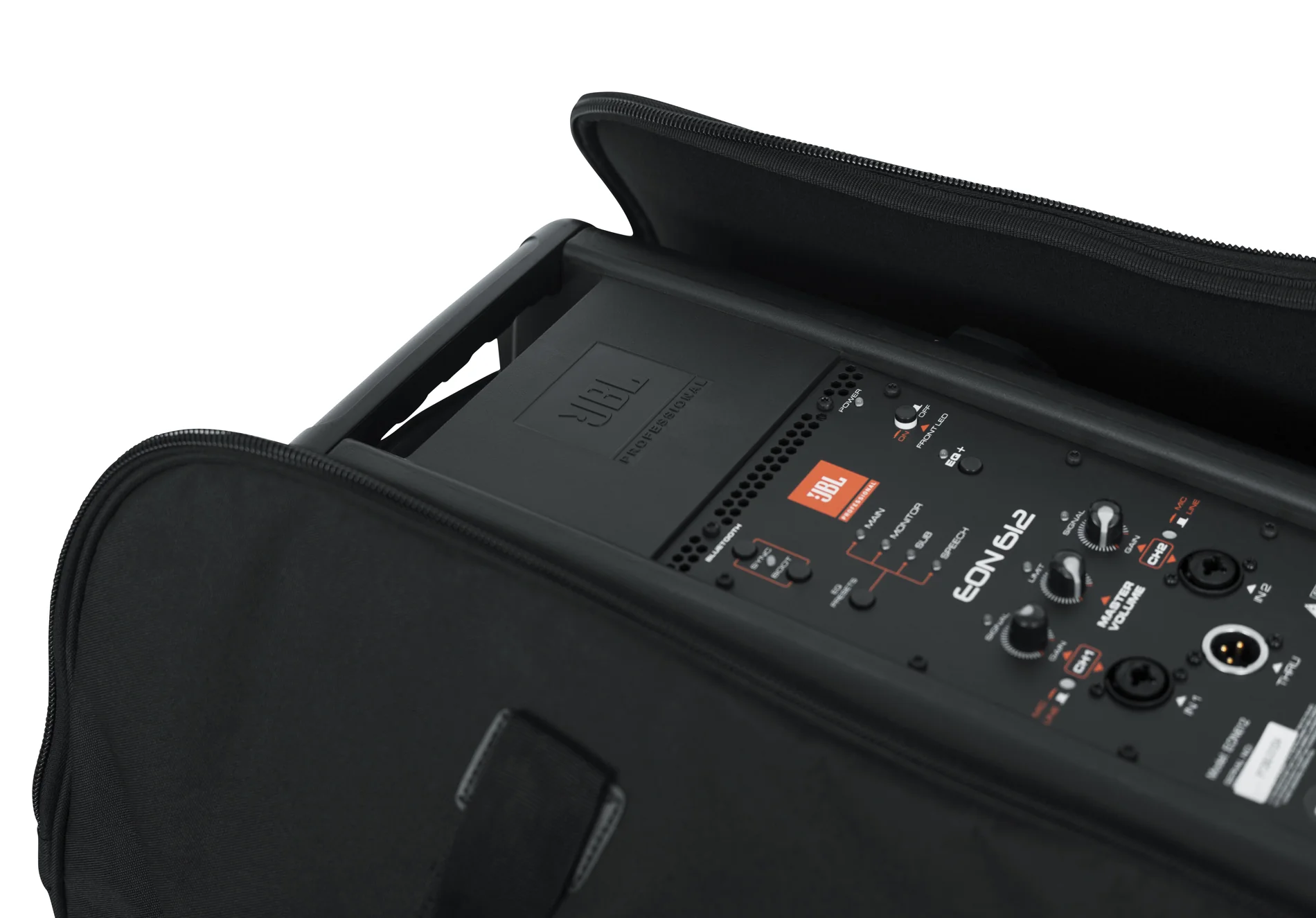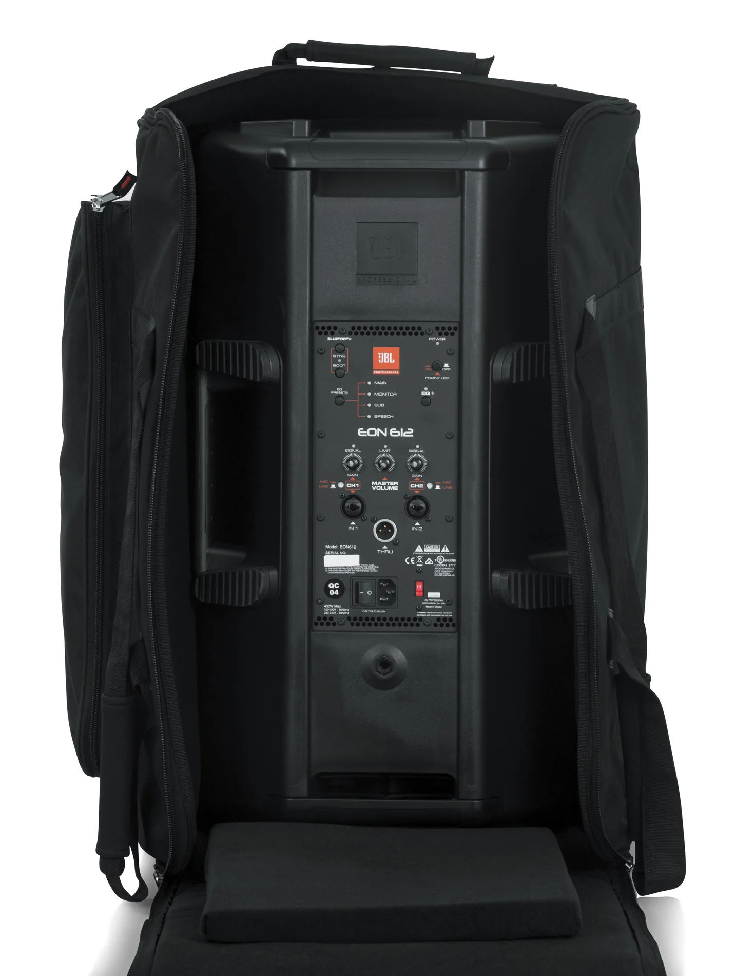 QSC K12, Mackie TH-12A, JBL PRX612M, JRX112M ve SRX712M ve Behringer B2120 dahil olmak üzere küçük format 12 ″ hoparlörler için tekerlekli hoparlör çantası
