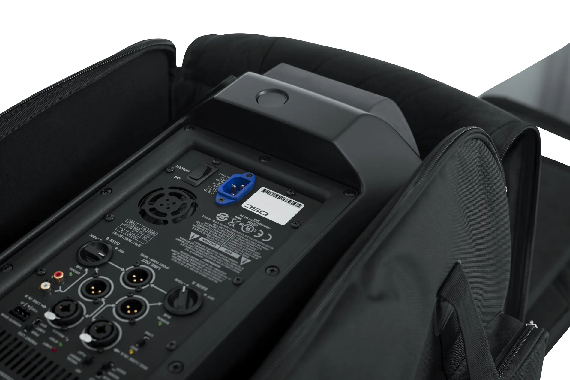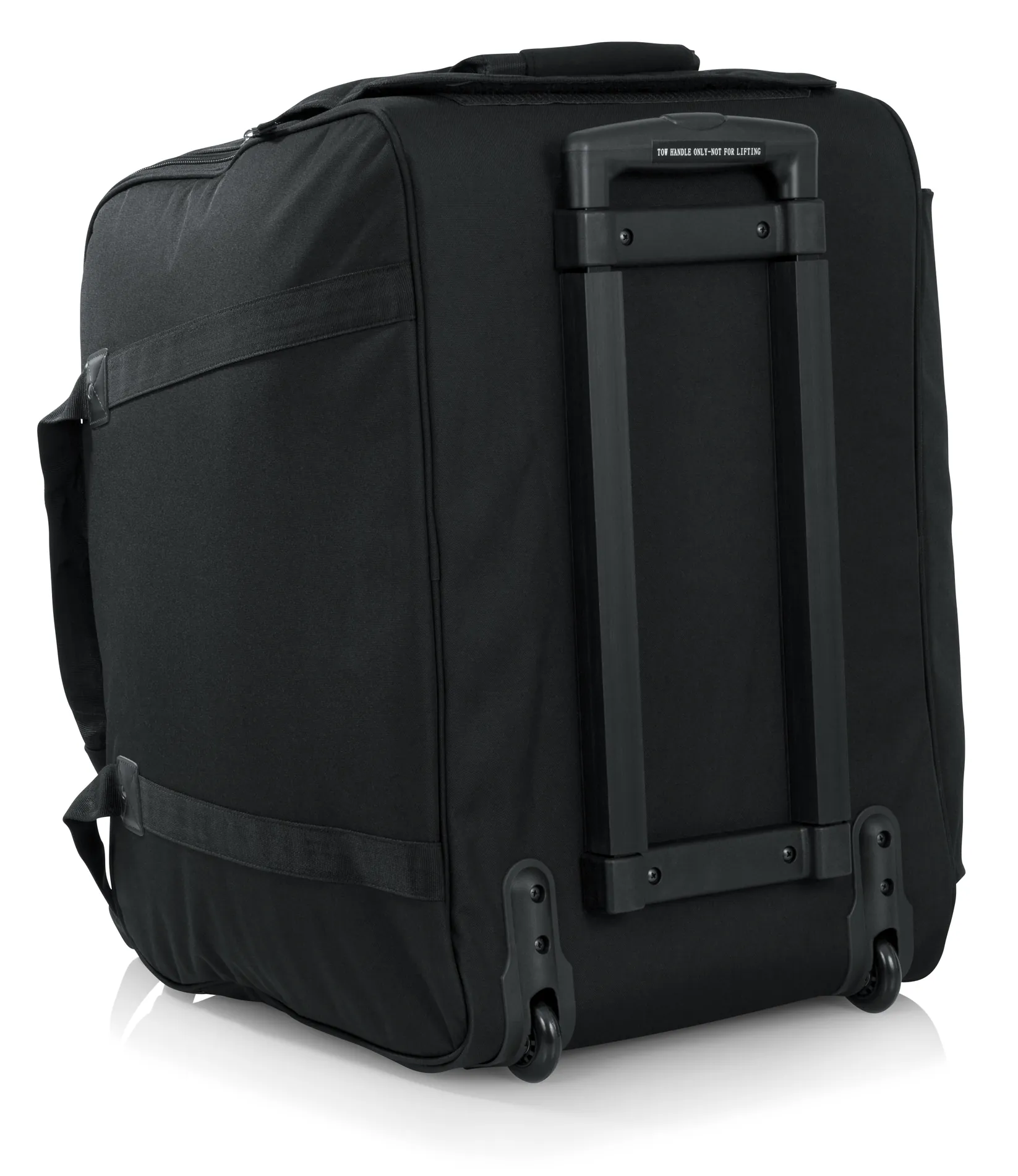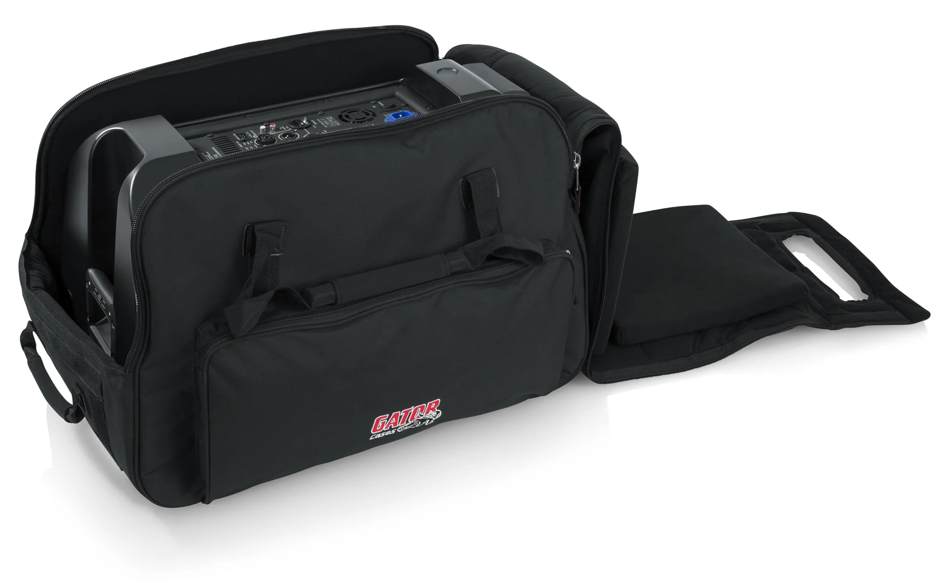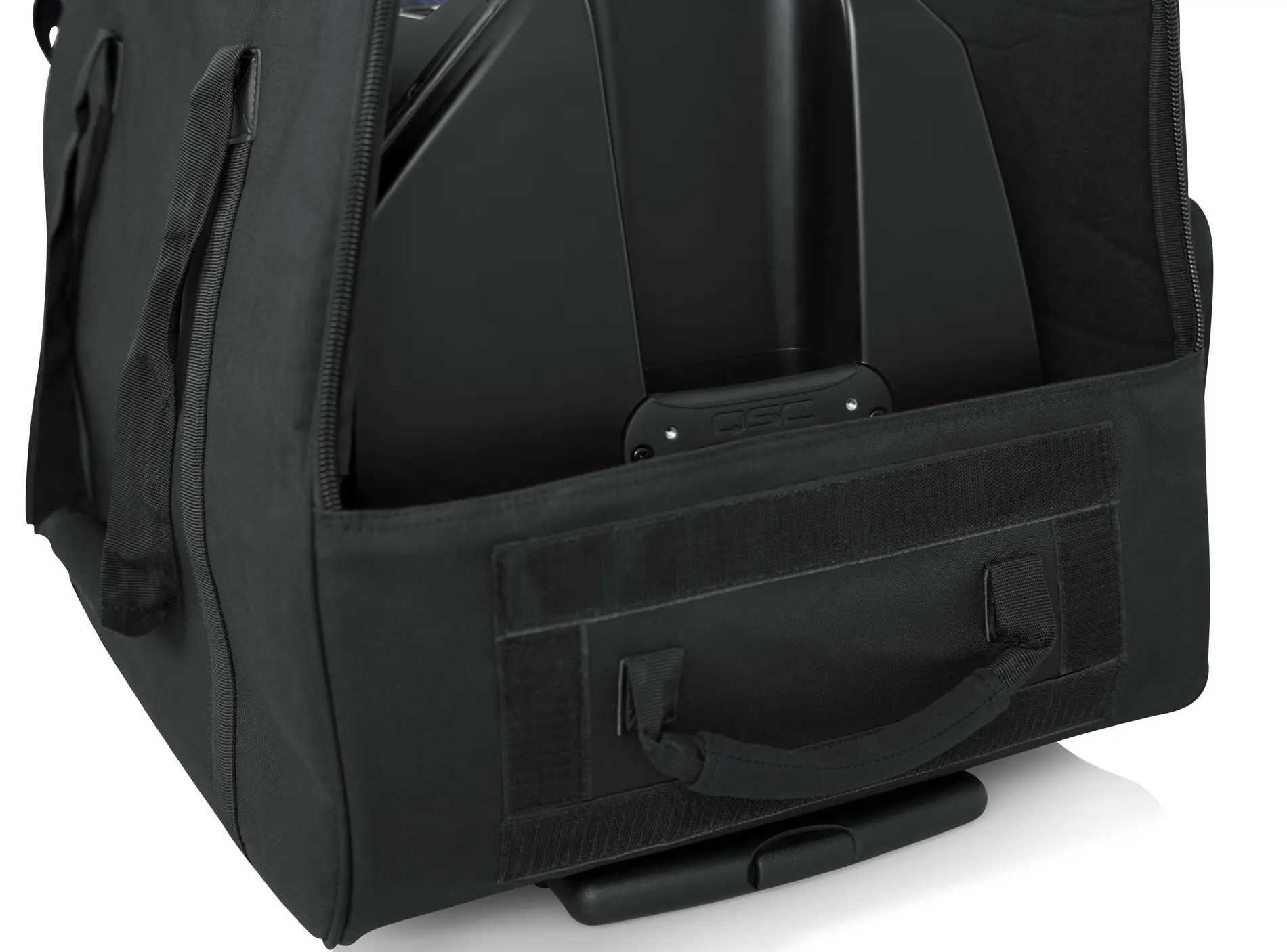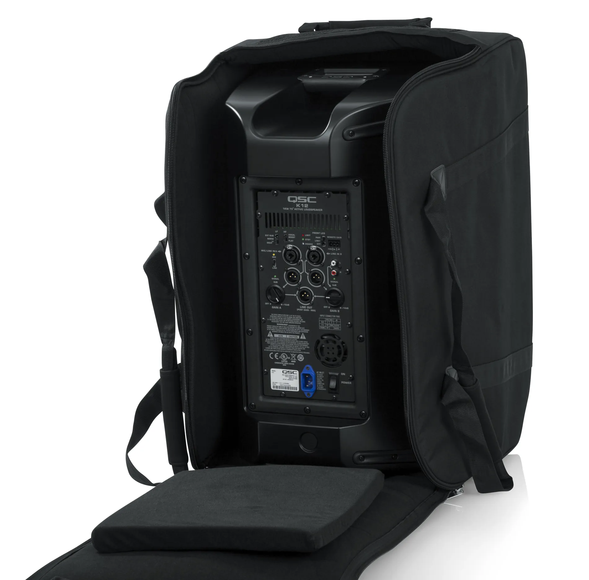 QSC K12, Mackie TH-12A, JBL PRX612M, JRX112M ve SRX712M ve Behringer B2120 dahil olmak üzere küçük format 12 ″ hoparlörler için tekerlekli hoparlör çantası