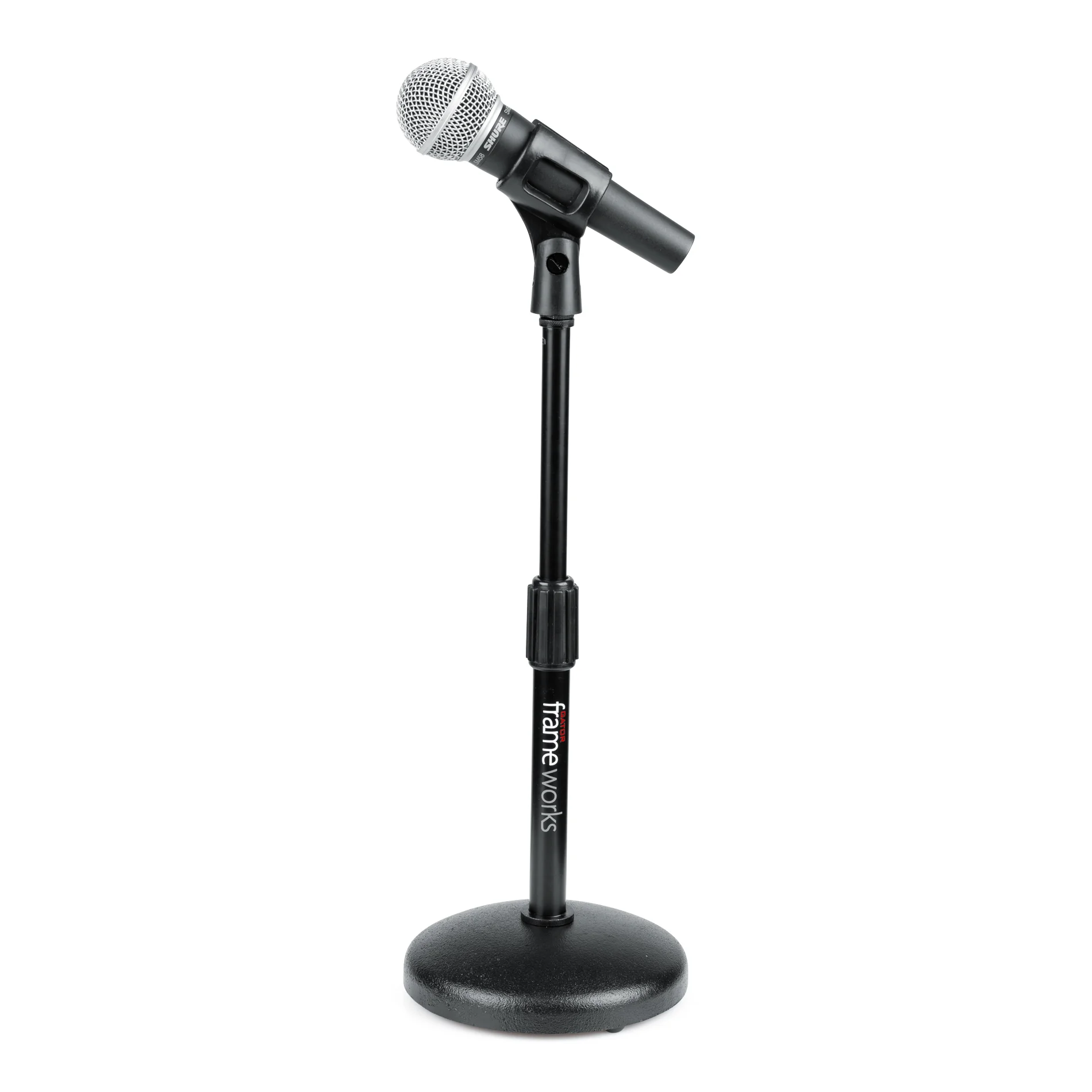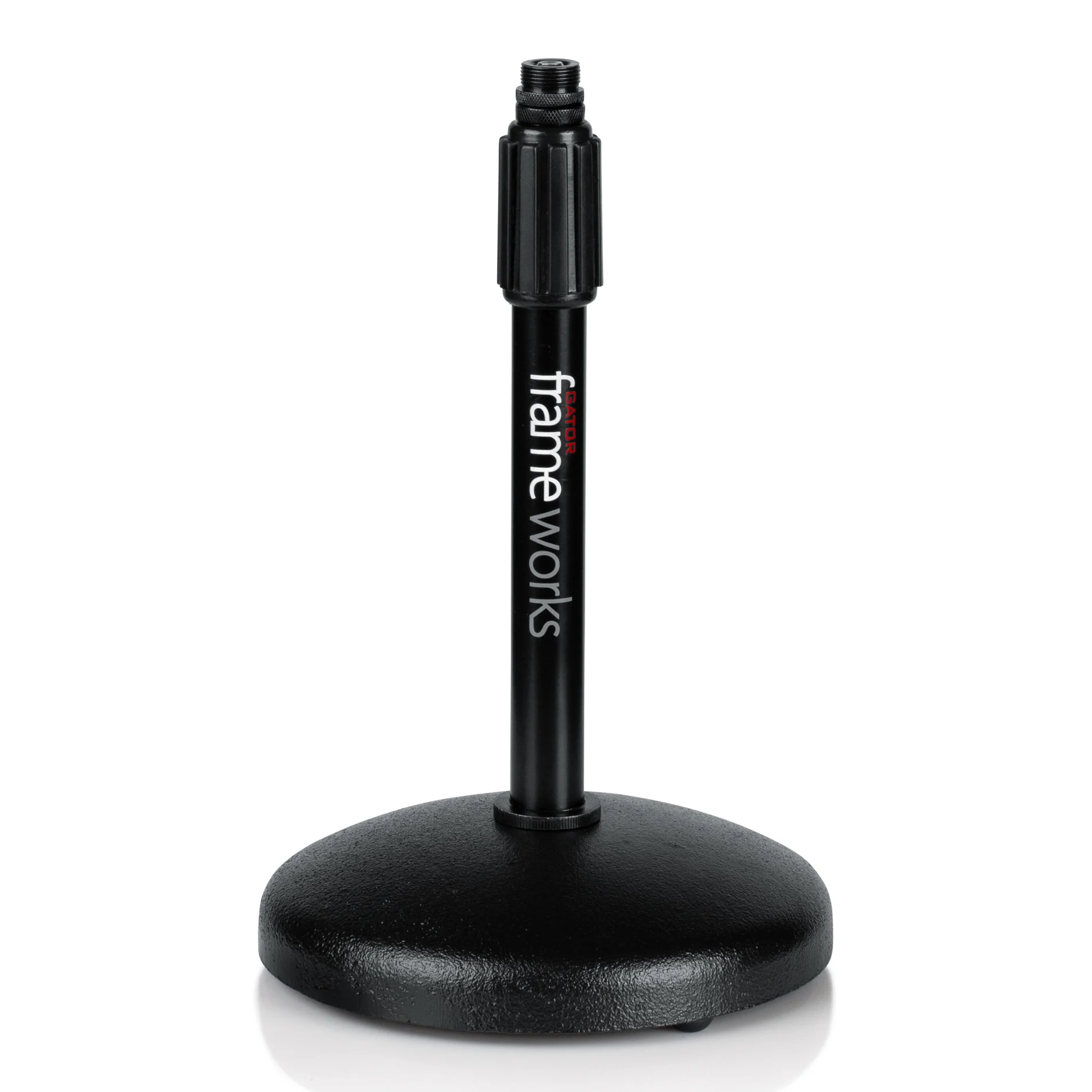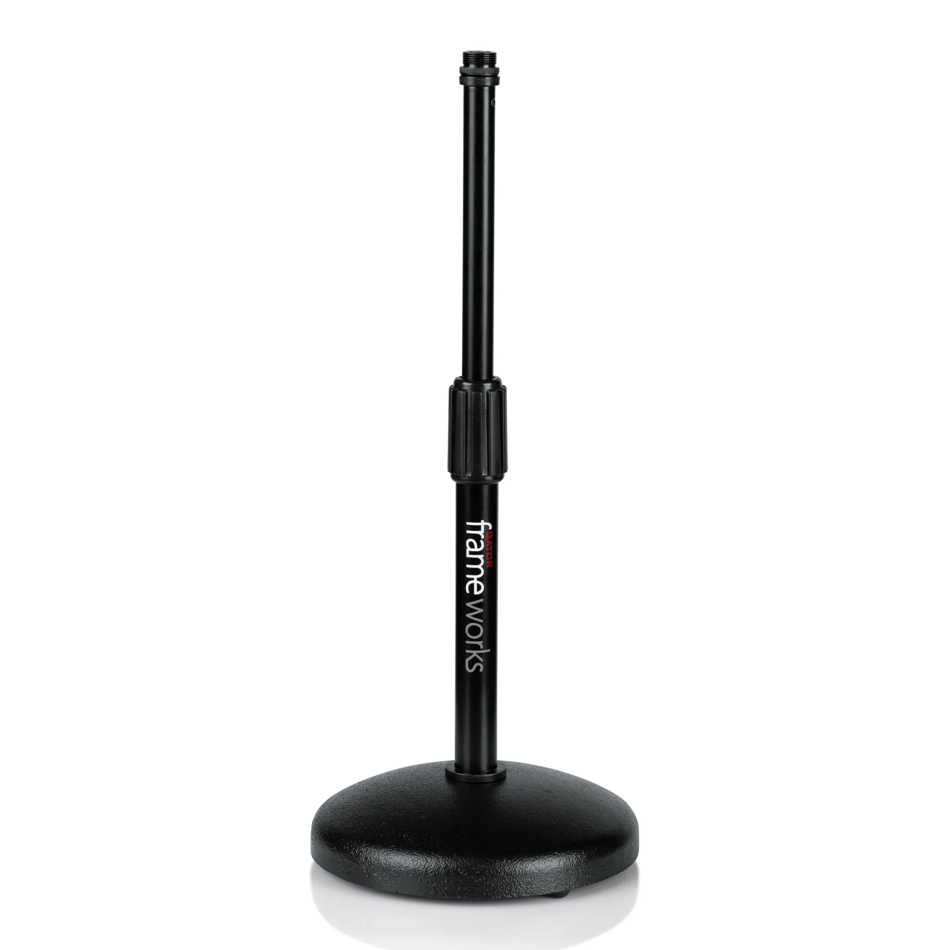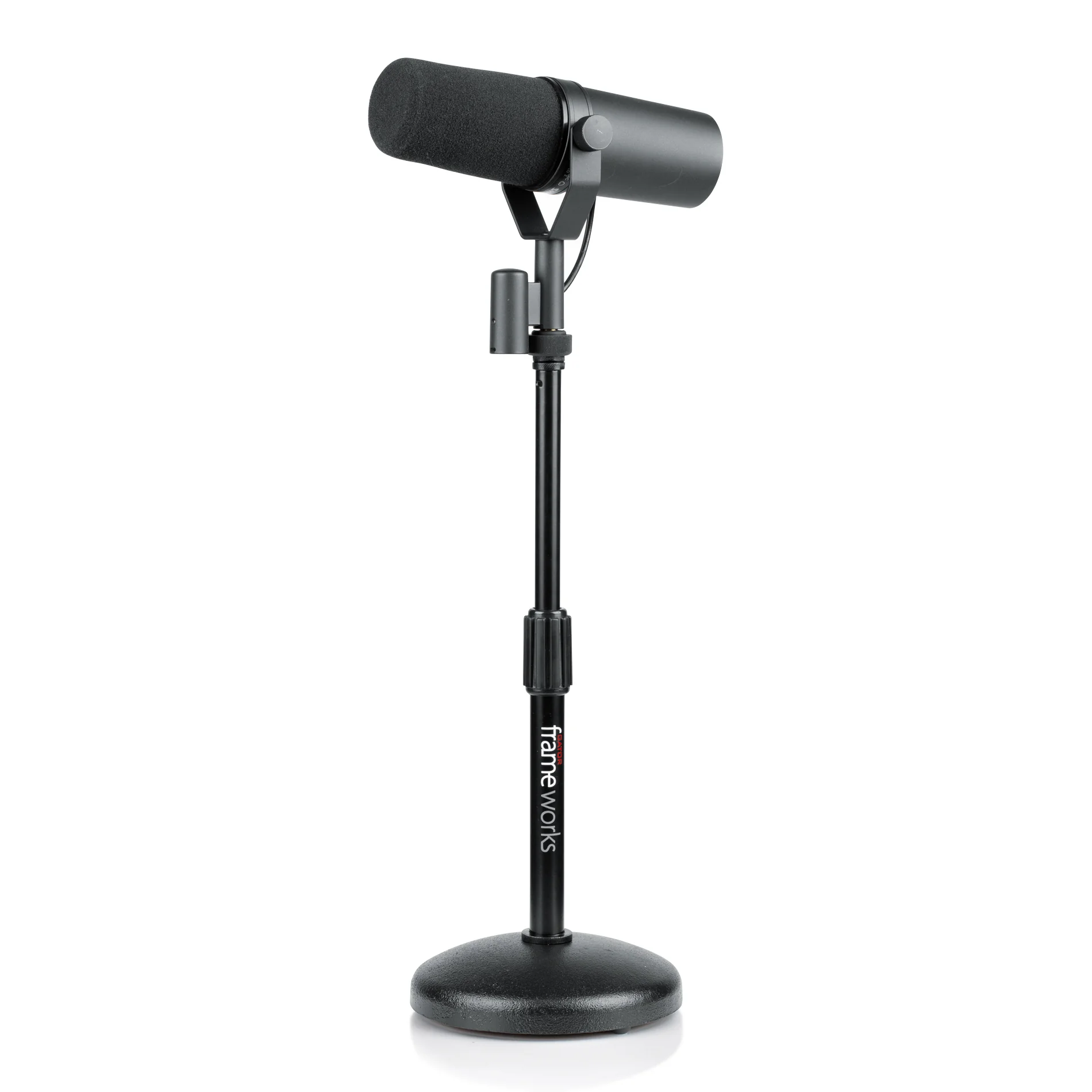 Yuvarlak taban ve ayarlanabilir yüksekliğe sahip masaüstü mikrofon standı