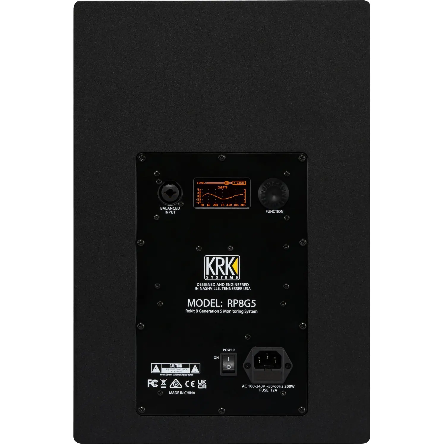 KRK Rokit RP8 G5, güçlü 8" woofer ve gelişmiş DSP oda ayarlarıyla ev stüdyosundan profesyonel prodüksiyon alanlarına kadar geniş kullanım olanağı sunar. Doğru referans için nötr ses dengesi sağlarken, efsanevi KRK karakterini ilham veren bir şekilde ortaya koyar. Ön portlu kabin tasarımı, düşük frekansların güçlü ama kontrollü bir şekilde yansıtılmasını sağlar.