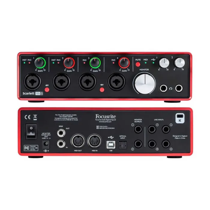 2. Nesil Focusrite Scarlett 18i8'in Dış Kısmı Şık Bir Tasarımdan Geçti. Kapağın Altında, Daha İyi Sonikler, Düşük Gecikme Süresi ve Gelişmiş Kullanım Kolaylığı Sağlamak İçin İnce Ayarlı ve Yükseltilmiş. 192 kHz'e Kadar Örnekleme Oranları ile Projeleriniz İçin Stüdyo Kalitesinde Sese Sahip Olursunuz. Focusrite, Doğal Ses Çıkaran Scarlett Mikrofon Preamp'lerinin Kazanç Yapısını Eşitledi ve Seviyeleri Daha Doğru Bir Şekilde Belirlemenizi Sağladı. Focusrite, Scarlett 18i8'in Giriş ve Çıkışlarında Analog Koruma Devresine Sahip Olup, Arayüzünüzü Zarar Verici Güç Dalgalanmalarından Korur. İlham Verici Olmak İçin Duymanız Gereken Her Şeyi İçeren Mükemmel Bir Ses İzleme Monitörü Varken Daha İyi Performans Gösterdiğinizi Bilirsiniz. Scarlett 18i8'in Süper Düşük Gecikme Süresi, Gerçek Zamanlı Olarak Yerel Eklenti Efektleriyle İzlemenizi Sağlar, Böylece Parçalarınızı Öngörürken Duyabilir ve Daha İyi Performanslar Kaydedebilirsiniz.