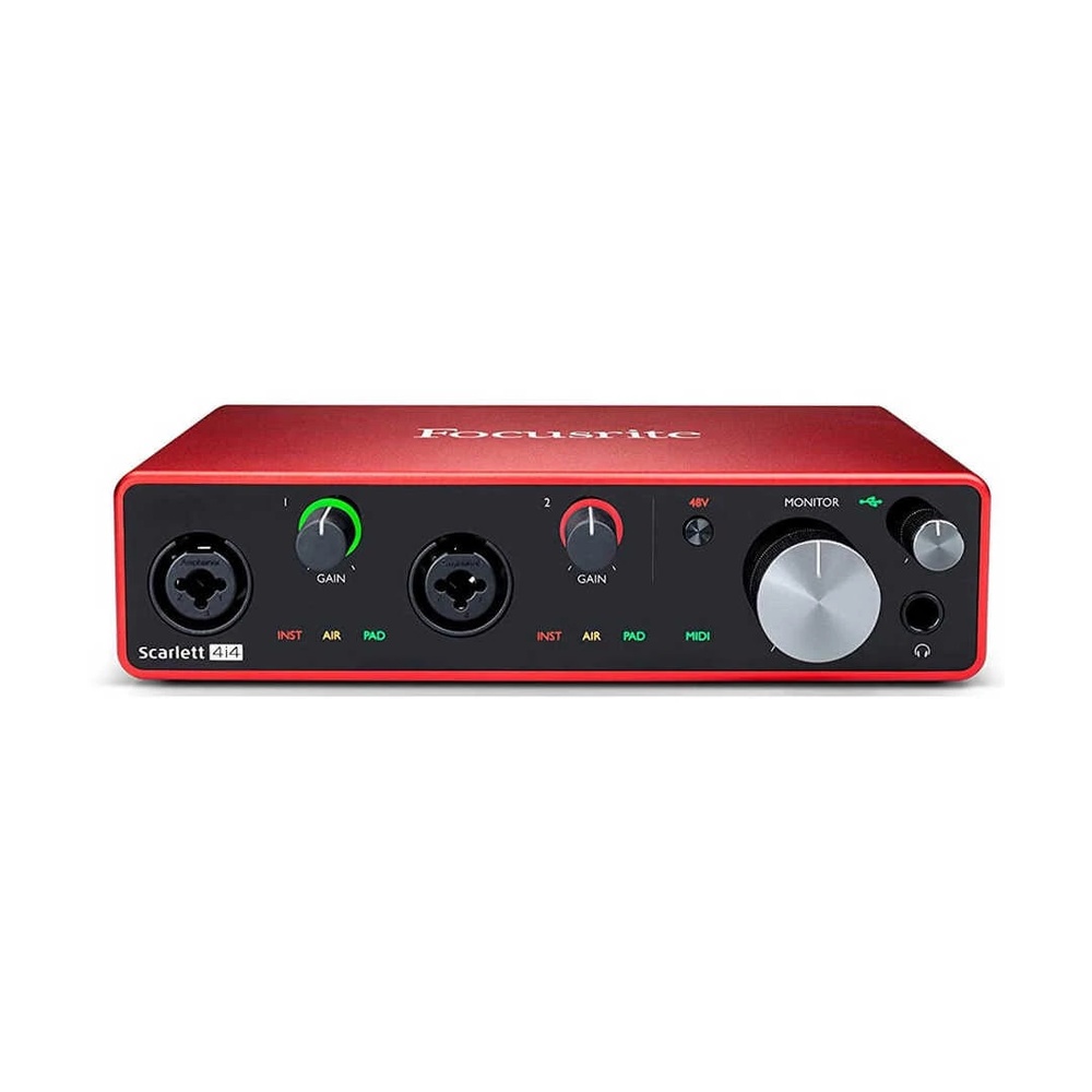 Focusrite'in Scarlett 4i4 Ses Arabirimi, Müzisyenler ve Biraz Daha Fazla Bağlantıya İhtiyaç Duyan Üreticiler İçin 4 Adede Kadar Mono Kaynağı veya Synth veya Drum Makineleri Gibi 2 Adet Stereo Hat Kaynağını Kaydetmenizi Sağlayan Mükemmel Bir Kayıt Ön Yüzüdür. İki Ödüllü Focusrite Mikrofon/Enstrüman Ön Uyarıcısı, İhtiyaç Duyduğunuz Yerde Ön Panelde Uygun Birleşik Girişlerle Birlikte Arka Panelde 2 Adet Dengeli Hat Girişi ve 4 Adet Dengeli Hat Çıkışı Artı MIDI I/O Barındırıyor. 3. Nesil Scarlett 4i4, 2 Adet Yükseltilmiş Scarlett Mikrofon Ön Amplifikatörü, Yüksek Performanslı 24Bit/192kHz AD/DA Dönüştürücüler, Optimize Edilmiş Preamp Kazanç Yapısı, Kaybolan Düşük Gecikme Süresi ve Enstrüman ile USB Ses Arabirimlerindeki Son Teknolojiyi Geliştiriyor. Mikrofon Önleyiciler Şimdi Focusrite'ın Ses ve Enstrüman Kayıtlarınıza Daha Parlak ve Daha Açık Bir Ses Sağlamak İçin Şirketin Efsanevi ISA Konsol Trafosunu Modelleyen Etkileyici Hava Efekti Sağlayan Alkışlanan Hava Moduna Sahiptir. Scarlett 4i4 Eviniz veya Mobil Stüdyonuz İçin İdeal Bir Temeldir. Dahili Yazılımı Başlatın ve Bugün Focusrite Scarlett 4i4 USB Ses Arabirimi ile Mükemmel Müzikler Yapmaya Başlayın!
