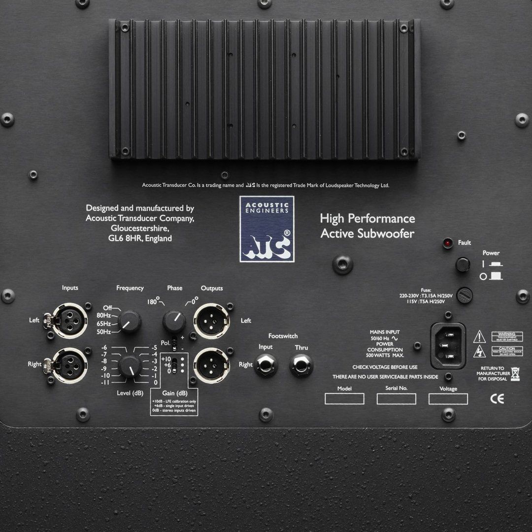 Amplifikatör tasarımı ve geliştirmesindeki 34 yıllık deneyimden yararlanan ATC'nin elektronik mühendisliği ekibi, bu iki yeni subwoofer için tamamen yeni bir amplifikatör üretti. 300W AB sınıfı tasarım, ATC tarafından Birleşik Krallık tesislerinde el yapımıdır ve tahrik ünitesinin gereksinimlerine tam olarak optimize edilerek minimum renklenme ile hızlı, dinamik bas elde edilir. İki dengeli giriş, hem stereo hem de çok kanallı/sürükleyici ses sistemlerine uygun bağlantı sağlar ve iki dengeli çıkış, hoparlörleri izlemek veya çoklu alt sistemlere 'papatya zinciri' bağlamak için bağlantılar sağlar. Alçak geçiren filtreler analogdur, 4. dereceden Linkwitz-Riley ve filtre frekansı seçenekleri, çok çeşitli stüdyo monitörleriyle optimum entegrasyon sağlar. Endüstri standardı 80Hz alçak geçiş ve 'kapalı' seçeneği (harici işleme ile kullanım için) de sağlanır. Polarite anahtarı artı sürekli değişken 180° faz ayarı, subwoofer geçişinin daha da optimize edilmesini sağlar ve 21 dB aralığına sahip kademeli bir zayıflatıcı, hassas seviye eşleştirmesi sağlar.