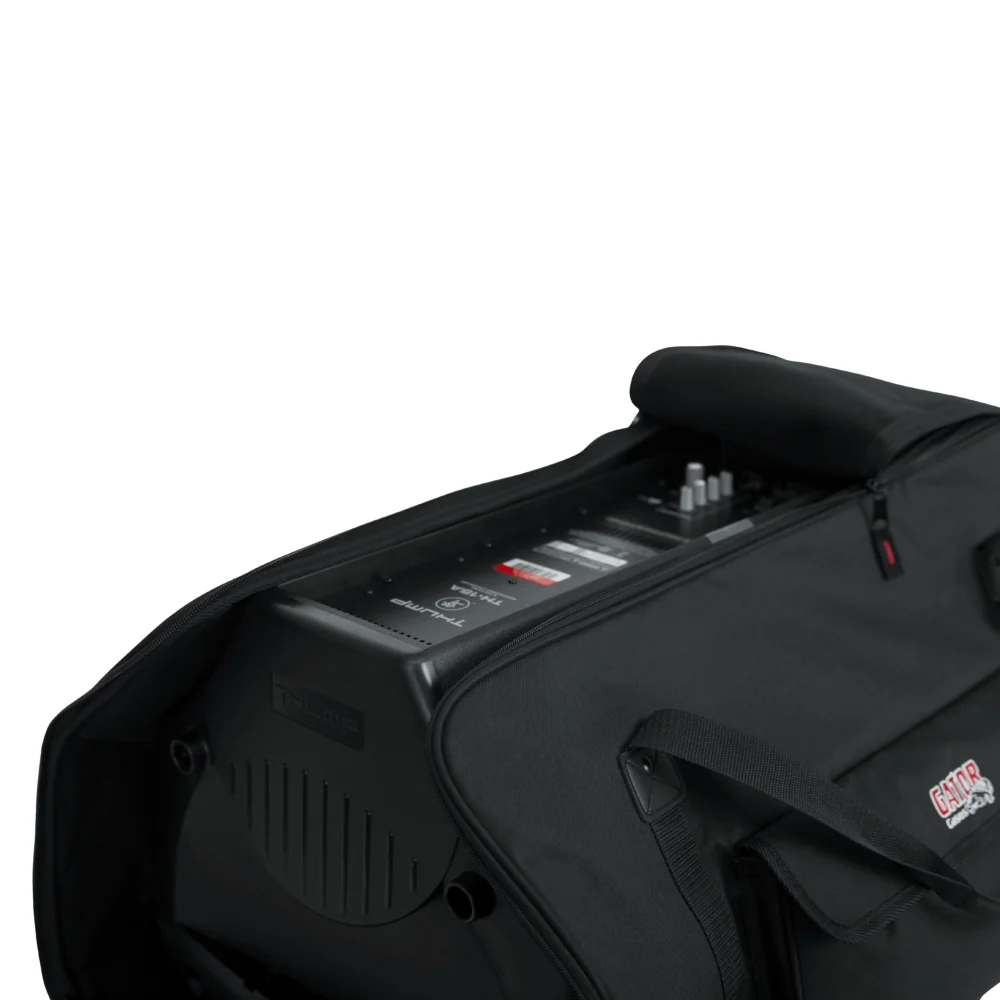 QSC K12, Mackie TH-12A, JBL PRX612M, JRX112M ve SRX712M ve Behringer B2120 dahil olmak üzere küçük format 12 ″ hoparlörler için tekerlekli hoparlör çantası