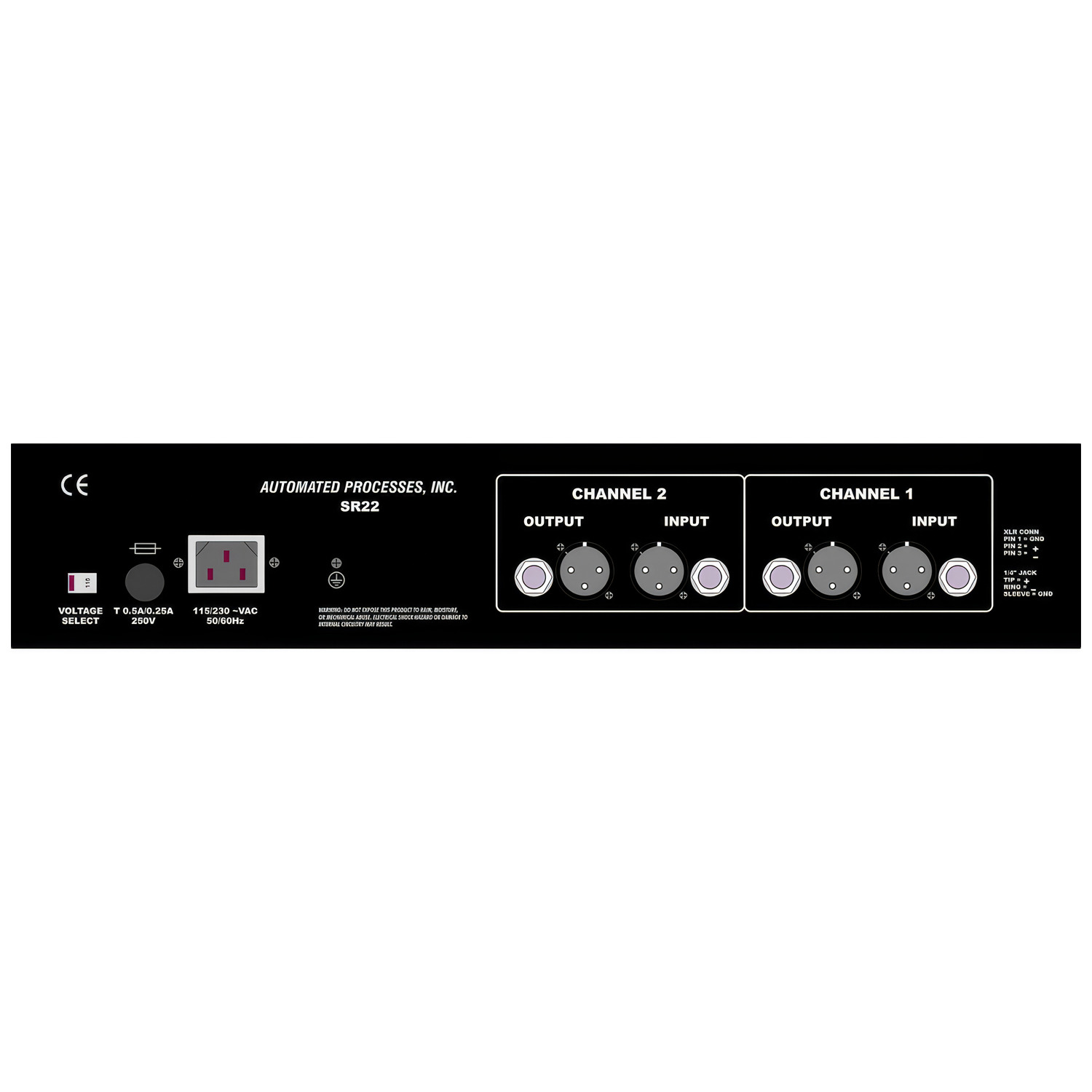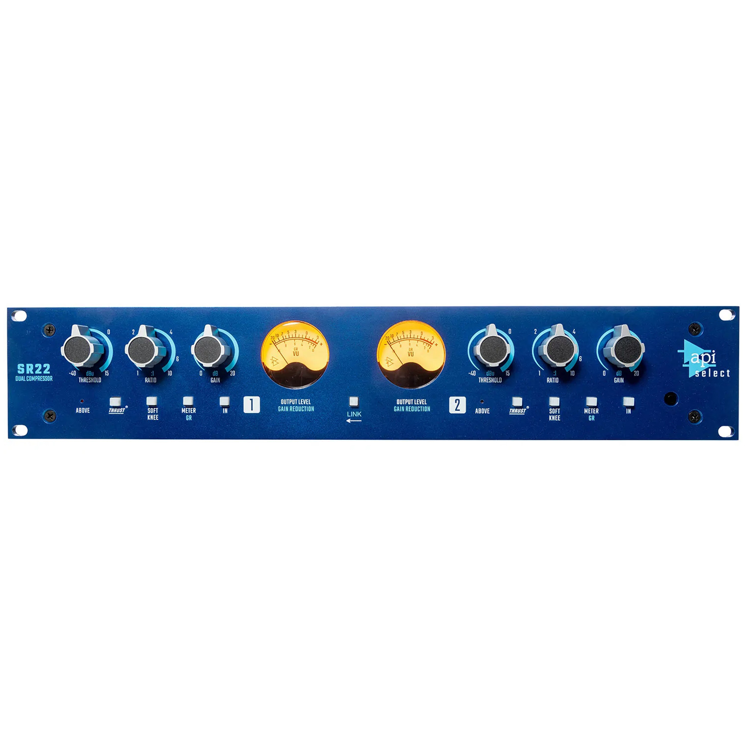 SR22 Çift Kanallı Kompresör, dahili güç kaynağına sahip rackmount (rack montajlı) bir ünitede API'nin patentli, ödüllü kompresör devresinin iki kanalını sunar. Bu aynı kompresör devresi, orijinal olarak efsanevi ATI Paragon analog canlı miks konsolu için tasarlanmıştı. Her kanal, ses sinyalinin hassas yüksek frekans içeriğini, en şiddetli kompresyon oranları (ratios) altında bile koruyan patentli THRUST® devresini içerir. Yeni SR24 Çift Kanallı EQ'nun mükemmel bir yol arkadaşı olan SR22, çıkışı ve kazanç azaltmayı (gain reduction) izlemek için klasik analog VU metrelerin yanı sıra kapsamlı, kullanımı kolay bir kontrol sağlar. İki kanal ayrıca, sol ve sağ sinyallerin gerçek RMS güç toplaması (true RMS power summing) ile stereo kompresör olarak kullanılmak üzere birbirine bağlanabilir (linked).