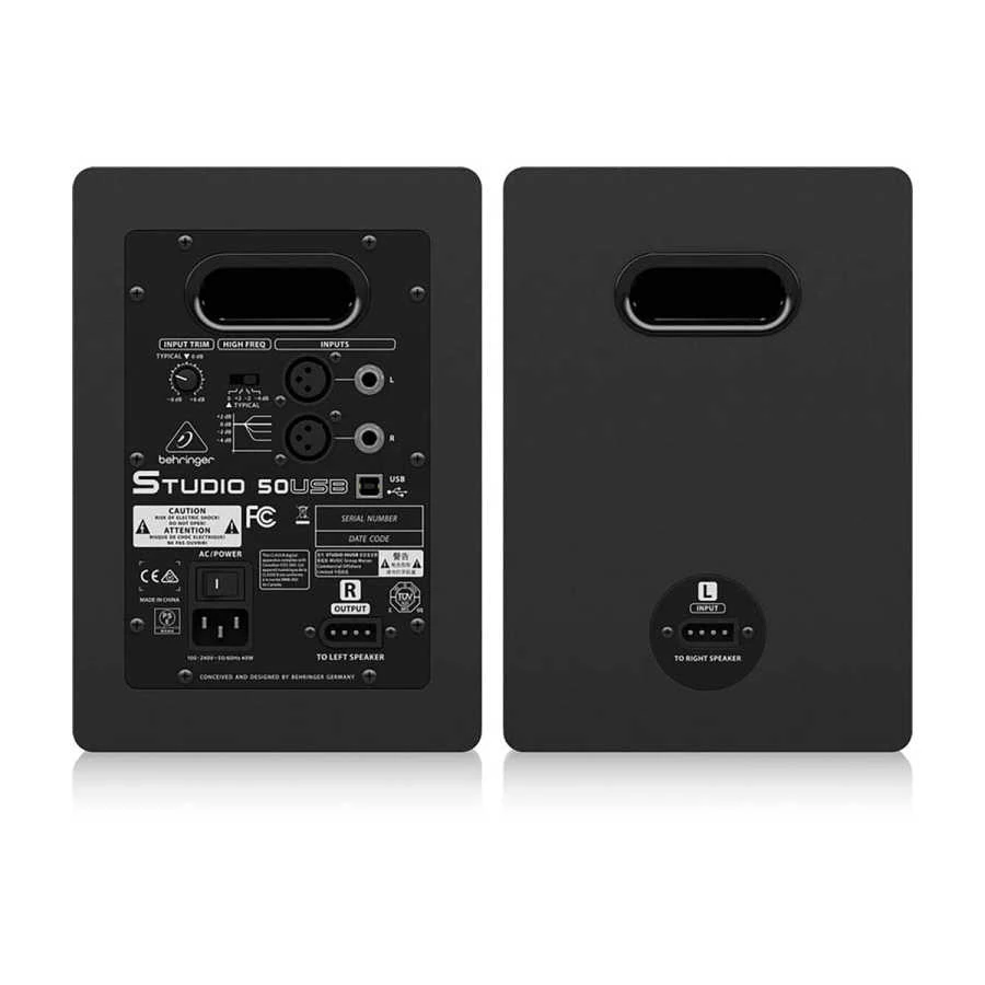 Çifti STUDIO 50USB - 150W 5" USB Stüdyo Monitör Hoparlörler Gelen Behringer. Ev, Stüdyo veya Multimedya İş İstasyonu İçin 150W İki Yönlü Aktif Stüdyo Monitörleri Olan Bunlar Direkt Bilgisayarınızdan Bağlantı Yanı Sıra Analog XLR İçin USB Girişi ile Donatılmıştır ve Bir Ses Arabirimiyle Kullanım İçin TRS Konnektörleri.