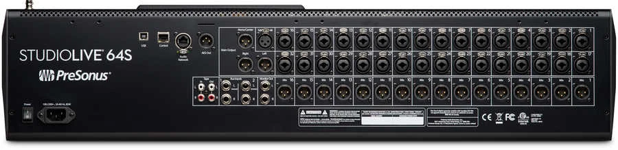 StudioLive 64S Presonus'un dünyaca kabul görmüş olan ve hem stüdyoda hem de sahnede rahatça kullanılabilen StudioLive serisinin dördüncü neslini temsil etmektedir. Bu seri presonus'un dört çekirdekli FLEX DSP motoru ile güncellenmiştir. FLEX DSP 76 miks kanalı, 43 bus ve 526 prosesöre imkan tanımaktadır. StudioLive 64S'in benzersiz özellikleri arasında ayarları saklanıp tekrar çağırılabilen 32 adet XMAX preamp, 128-kanal (64x64) USB kayıt, sanal sound check özellikli çok kanallı SD kayıt, her kanal için güncellenip, geliştirilebilen stüdyo kalitesinde vintage tip EQ ve compressora sahip Fat Channel Plug-in’ler, şifre korumalı kullanıcı profilleri, Aux, Sub veya Matrix olarak tanımlanabilen 32 FlexMix, 33 dokunmaya hassas motorize fader, Capture ve Studio One Artist yazılımını içeren zengin yazılım desteği sayılabilir.
