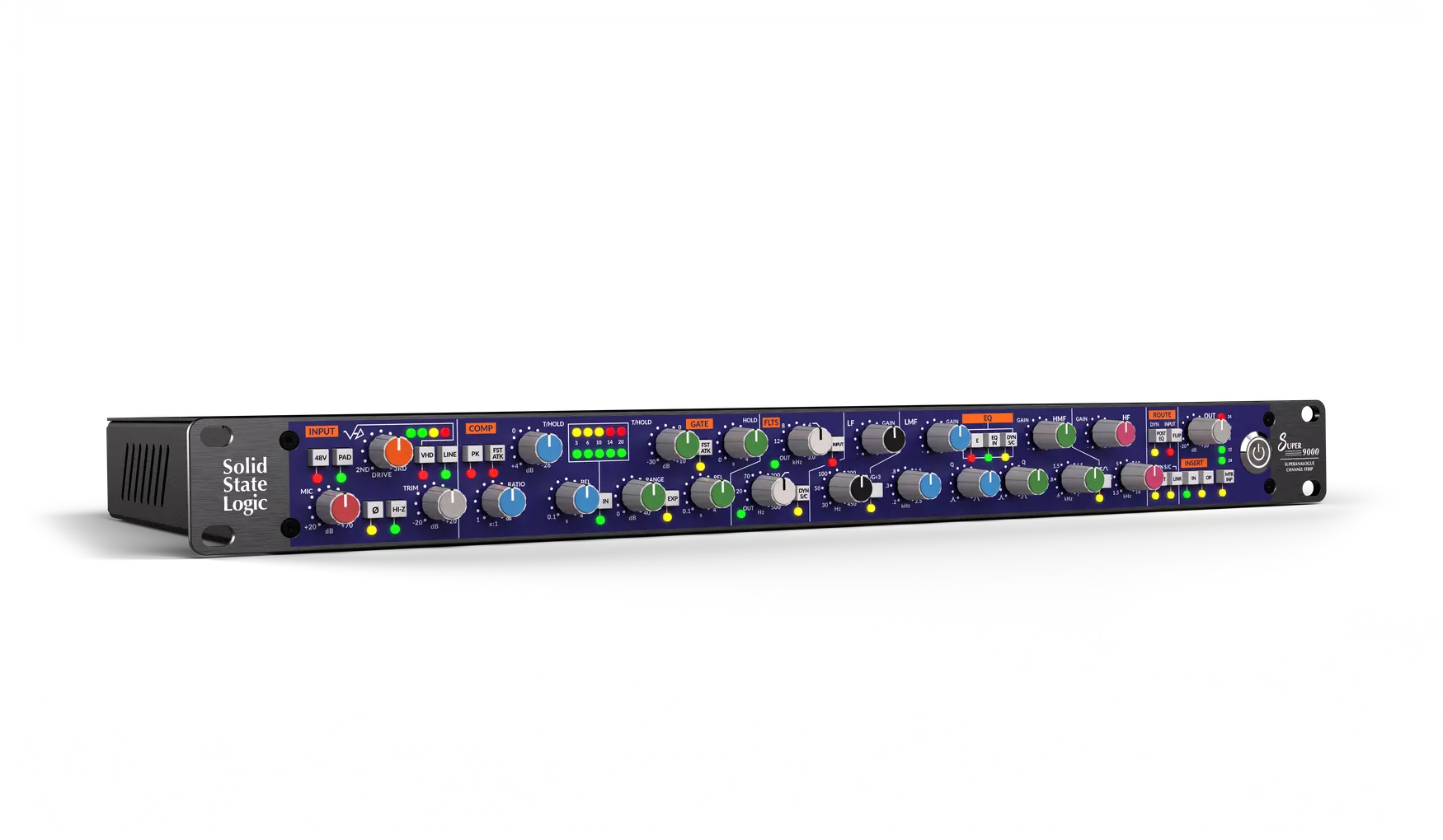 Super9000’in dinamik bölümü, THAT 2181A VCA tabanlı kompresörüyle üstün kontrol ve punch sunar. Hızlı Attack modu ve Peak Detect seçeneği, SL 9000 ve Duality serilerinden miras alınmıştır. Klasik Expander/Gate bölümü, değişken histerezis ve HOLD kontrolü ile hassas kapı ve downward expansion yönetimi sağlar. Ayrıca, dinamik bölümü EQ öncesi veya sonrası konumlandırılabilir, böylece miks üzerinde tam hakimiyet elde edilir. Bu esneklik, Super9000’i karmaşık prodüksiyonlarda vazgeçilmez kılar.