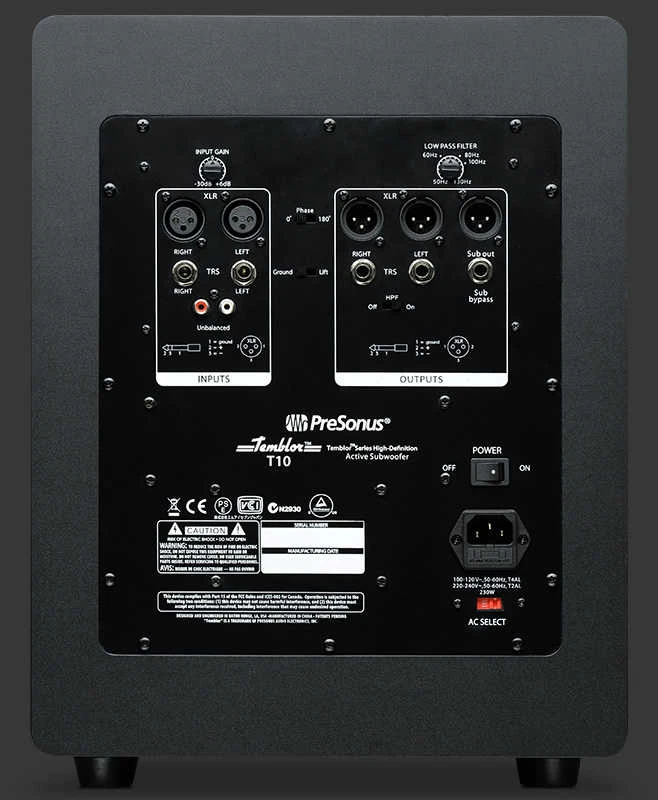 Temblor T10'un Fiyat Aralığında Bulunan Başka Hiçbir Subwoofer'da Bu Kadar Kapsamlı Giriş Çıkış Bulunmamaktadır. T10 Üzerinde Üç Adet Çift Giriş Bulunmaktadır: İki Çift Balanslı Giriş (XLR ve 1/4" TRS) ve Bir Çift Balanssız RCA Giriş. Her İki Balanslı Girişe Sinyal Uygulandığında TRS Girişindeki Sinyal Kullanılır. RCA Girişindeki Sinyal ise Balanslı Girişteki Sinyal ile Mikslenerek Çıkışa Verilir. İki Çift Balanslı Giriş: XLR ve 1/4" TRS. T10'un Girişlerine Verilen Sinyal Bu Çıkışlar Üzerinden Bağlayacağınız Full Range Hoparlörlere Verilir. Highpass Filtre Devreye Alındığında 80 Hz'in Altındaki Sinyaller Bu Çıkışa Verilmez. T10 Üzerinde Aynı Zamanda İkinci Bir T10'a Bağlantı Sağlamak İçin Ayrı Bir XLR Sub Çıkış Bulunmaktadır (Bu Çıkış Sadece Alçak Geçirgen Filtrenin Çıkışından Beslenmektedir). Eğer Bir Adet T10 Size Yetmiyorsa Bu Çıkış ile İkinci Bir T10 Sisteme Dahil Edilebilir.