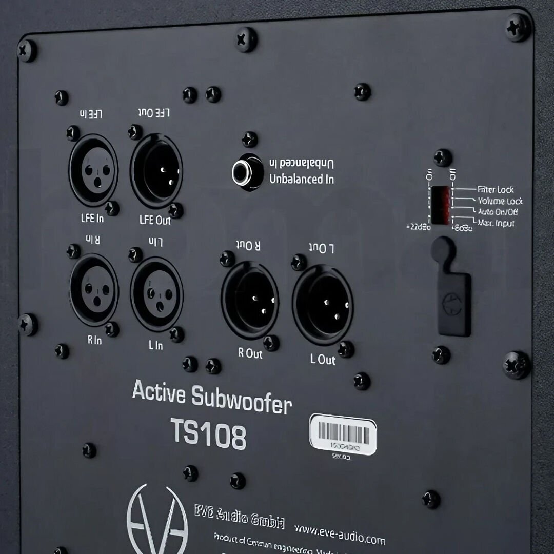 Diğer tüm EVE Audio subwoofer'larda olduğu gibi, daha fazla rahatlık için dengeli XLR Giriş ve Çıkışlar (Stereo Giriş ve Çıkış, LFE Giriş, LFE/Sub Çıkış) elde edersiniz.