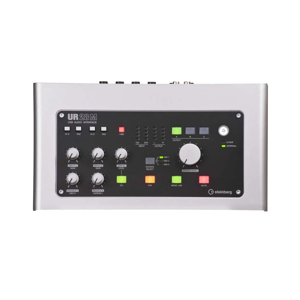 Steinberg UR28m, müzik prodüksiyonunda kalite ve esnekliği bir araya getiren, yüksek çözünürlüklü ses sunmak üzere tasarlanmış bir ses kartıdır. 4 giriş ve 6 çıkışa sahip olan bu model, hem ev stüdyoları hem de profesyonel kayıt ortamları için ideal bir çözüm sunar. UR28m’in en dikkat çekici özelliklerinden biri, değiştirilebilir fantom gücüne sahip D-Pre mikrofon ön amplifikatörleriyle donatılmış olmasıdır. Bu sayede, vokal ve enstrüman kayıtlarında üst düzey şeffaflık ve detay elde edilir. Ayrıca stereo mini giriş jakı, taşınabilir müzik çalarlar veya referans kaynakları gibi farklı cihazları kolayca bağlamanıza olanak tanır. Steinberg UR28m, DSP üzerinde çalışan Guitar Amp Classics efekt paketiyle, gitaristlere gecikmesiz izleme ve gerçek zamanlı efekt kullanımı imkanı sunar. 24-bit/96kHz USB 2.0 ses arabirimi sayesinde, kayıtlarınızda en ince ayrıntıları bile kayıpsız şekilde yakalayabilirsiniz. DspMixFx teknolojisi ile REV-X yankı ve dört kanal şeridi, herhangi bir DAW ile gecikmesiz DSP destekli izleme sağlar. 3x3 izleme matrisiyle beslenen dijital monitör seviye kontrolü, DIM, Mono ve Mute gibi işlevlerle stüdyo akışınızı kolaylaştırır. UR28m, tek bir çıkış ses seviyesiyle üç ayrı stereo çıkış çiftinin bireysel seviyelerini veya altı çıkışın tamamını aynı anda kontrol etmenize olanak tanır. DspMixFx karıştırıcısı veya dahil edilen Cubase yazılımı ile üç ayrı izleme karışımı oluşturabilir, bunları istediğiniz çıkışlara yönlendirebilirsiniz. Tüm bu özellikler, Steinberg UR28m’i hem yaratıcı hem de teknik açıdan üst düzey bir ses kartı haline getirir.