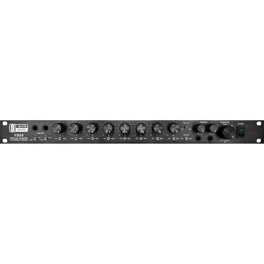 Steven Slate Audio VRS8’in en dikkat çekici özelliklerinden biri, sekiz adet yüksek bant genişliğine sahip Ultra Linear mikrofon preamfisine sahip olmasıdır. Bu preamfiler, Slate Digital’in ödüllü Sanal Mikrofon Sistemi’ndeki VMS-One ile aynı “boş tuval” yaklaşımını benimser ve modelleme yazılımı ile efsanevi mikrofonların karakterini gerçekçi biçimde yeniden yaratmanıza olanak tanır. Her kanal için ayrı metal düğmeler sayesinde, seviyeleri klasik analog ekipmanlarda olduğu gibi doğrudan ve kolayca ayarlayabilirsiniz. VRS8’in özel LLN (Low Latency Native) teknolojisi, 96kHz’de yalnızca 1 ms gecikme ile neredeyse gerçek zamanlı izleme imkanı sunar. Bu sayede, analog modellemeli eklentilerle çalışırken performansınızdan ödün vermeden, yaratıcı sürecinizi kesintisiz sürdürebilirsiniz. Ayrıca, ultra kararlı XTC Audio Clock sistemi ve yüksek kaliteli WIMA kapasitörler, ses zincirinin her aşamasında maksimum doğruluk ve kararlılık sağlar.