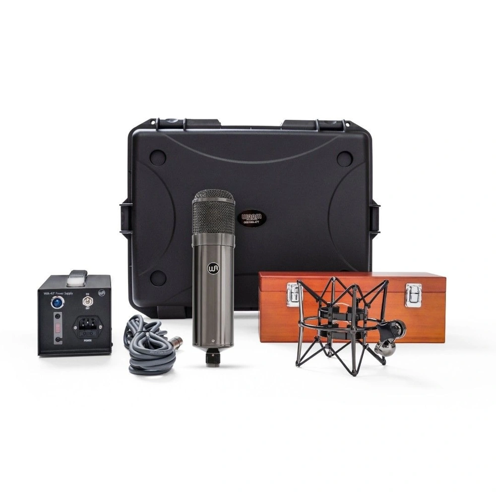 Warm Audio WA-47 T, klasik 47 tarzı tüplü kondansatör karakterini modern stüdyo düzenine taşıyan büyük diyaframlı bir mikrofondur. K47 tarzı altın kaplamalı çift arka plakalı kapsül, premium 5751 vakum tüpü ve ABD yapımı TAB-Funkenwerk (AMI) çıkış trafosu ile derin baslar, zengin midler ve yumuşak tizler üretir. 20 Hz–20 kHz frekans aralığı, vokalden akustik gitara kadar geniş kullanım sunar.