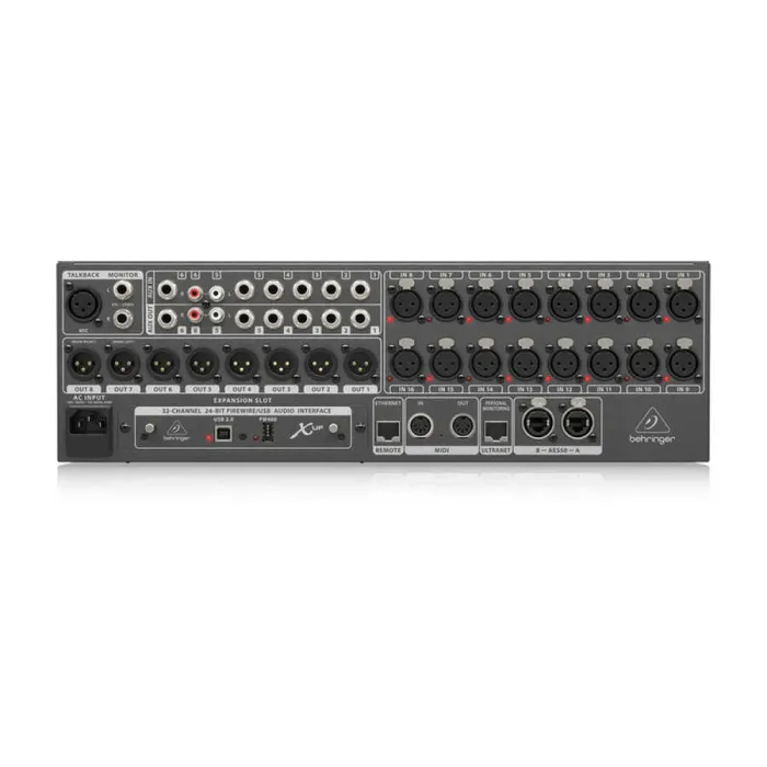 GENEL ÖZELLİKLER Canlı ve Kurulu Ses Uygulaması İçin 40 Girişli Kanal Audiophile Ses Kalitesi İçin 16 Midas Tasarımlı, Tamamen Programlanabilir Mikrofonlu Ön Amplifikatörler 8 XLR Çıkışı ve 6 Ek Hat Girişi / Çıkışı, Bir Telefon Bağlantısı ve XLR Mikrofon Girişi Olan Bir Görüşme Bölümü 32 x 32 Kanallı USB 2.0 Ses Arabirimi Uzaktan Profesyonel Kullanım İçin İPad ve iPhone Uygulamaları Ücretsiz Olarak Kullanılabilir İş Akışı Bileşenlerinin ve Parametrelerinin Kolay Görüntülenmesi İçin Yüksek Çözünürlüklü 5"Gündüz Görülebilir Renkli TFT Ekran Karmaşık Yapımların Rahat Kullanımı İçin Güçlü Sahne Yönetimi Dosya Saklama ve Sıkıştırılmamış Stereo Kayıtlar Sağlayan USB Tip-A Konektör, Ayrıca Hazır Ayarları ve Sistem Güncellemelerini Gösterir Behringer's P16 Kişisel İzleme Sistemi İçin ULTRANET Bağlantısı Ekran Üstü Yazılım Düzenleyicili Şov Ayarları İçin Ethernet Üzerinden Ağ Üzerinden Uzaktan Kumanda Ses Arabirim Kartları veya Dijital Ağ Köprüleri İçin Dahili Genişletme Bağlantı Noktası Uzaktaki Sahneleri Hatırlamak veya Diğer MIDI Ekipmanlarını Kontrol Etmek İçin MIDI Giriş / Çıkış